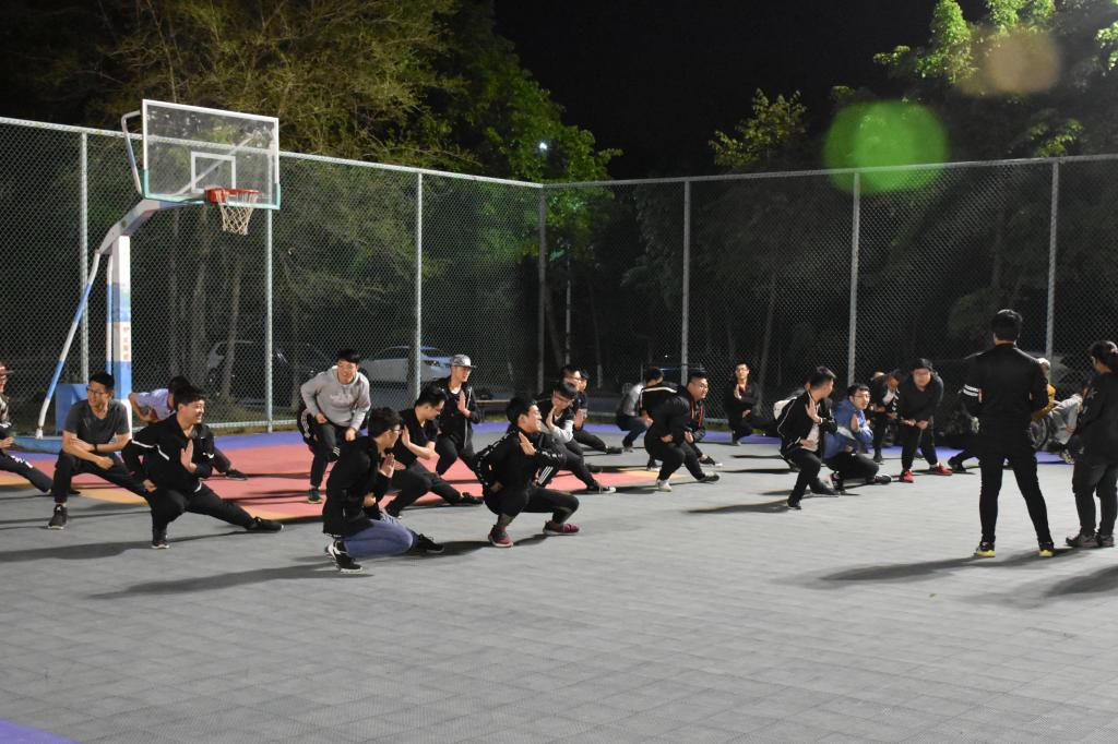此次三路长拳队伍由来自2018级的30名同学组成,长拳教练由2017级同学担任。训练工作首先是由三路长拳教练——刘明鑫同学和曲德馨同学向参加本届运动会长拳比赛的同学示范动作,同时对动作细节进行详细的讲解。然后,教练将动作分解后,一步一步指导给参赛同学,力求每个同学都能将动作做到标准。在保证动作标准的同时,同学们还要时刻配合队伍的其他同学,保证队伍整齐划一。虽然夜晚天气寒冷,但同学们依然精神饱满,毫不懈怠地进行着长拳训练。最后,教练们指导同学们排练了三路长拳比赛当天的进场入场,力争在比赛当天,向全校师生展现仪电学院的风采。