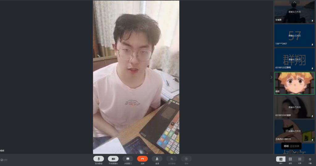 首先,杨宇婷等同学向大家分享自己在疫情期间的学习和生活,许多同学都表示有类似的体验和感受;常月、韩旭磊等同学则提出了自己在学习中遇到的困难,这也是班级同学通常存在的一些共性问题,赵楷沣、刘旭东等同学纷纷献计献策、解答困惑,为他们学习上的困难一一提出解决办法,并分享自己的学习技巧,使同学们收获颇多。接下来,王凯杰等同学就疫情期间期末考试的方式,发表了看法与意见,向老师们反映了同学们的想法,王中焘同学将疫情期间自己对学习的感悟与收获分享给大家。最后,学习委员杨维浩进行班会总结,为同学们汇报了各个科目的学习进度与考试时间,使同学们能够更加严肃认真地对待期末考试。