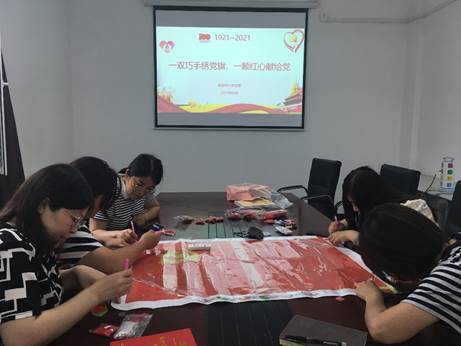 在伟大的中国共产党迎来百年华诞之际,实验中心党支部的全体党员怀着对党的无限敬意用一双巧手绣上一面党旗,让党旗永远高高飘扬在基层党支部,闪耀在每一名党员心中。6月25日下午,实验中心党支部全体党员汇聚在一起,用双手点亮一颗一颗“红钻”,一点一点为党旗“增色增辉”。同志们一边“绣”党旗,一边回忆江姐等革命前辈的英雄事迹。这既是一次旗帜鲜明的主题党日活动,更是一次缅怀先烈、激励人心的心灵洗礼。通过这个活动,同志们更加珍惜这来之不易的美好生活,将以更加坚定的信心、更加昂扬的斗志投入到社会主义现代化建设中。不断发挥共产党员的先锋模范作用,让党旗高高飘扬在祖国大地的每一个角落。